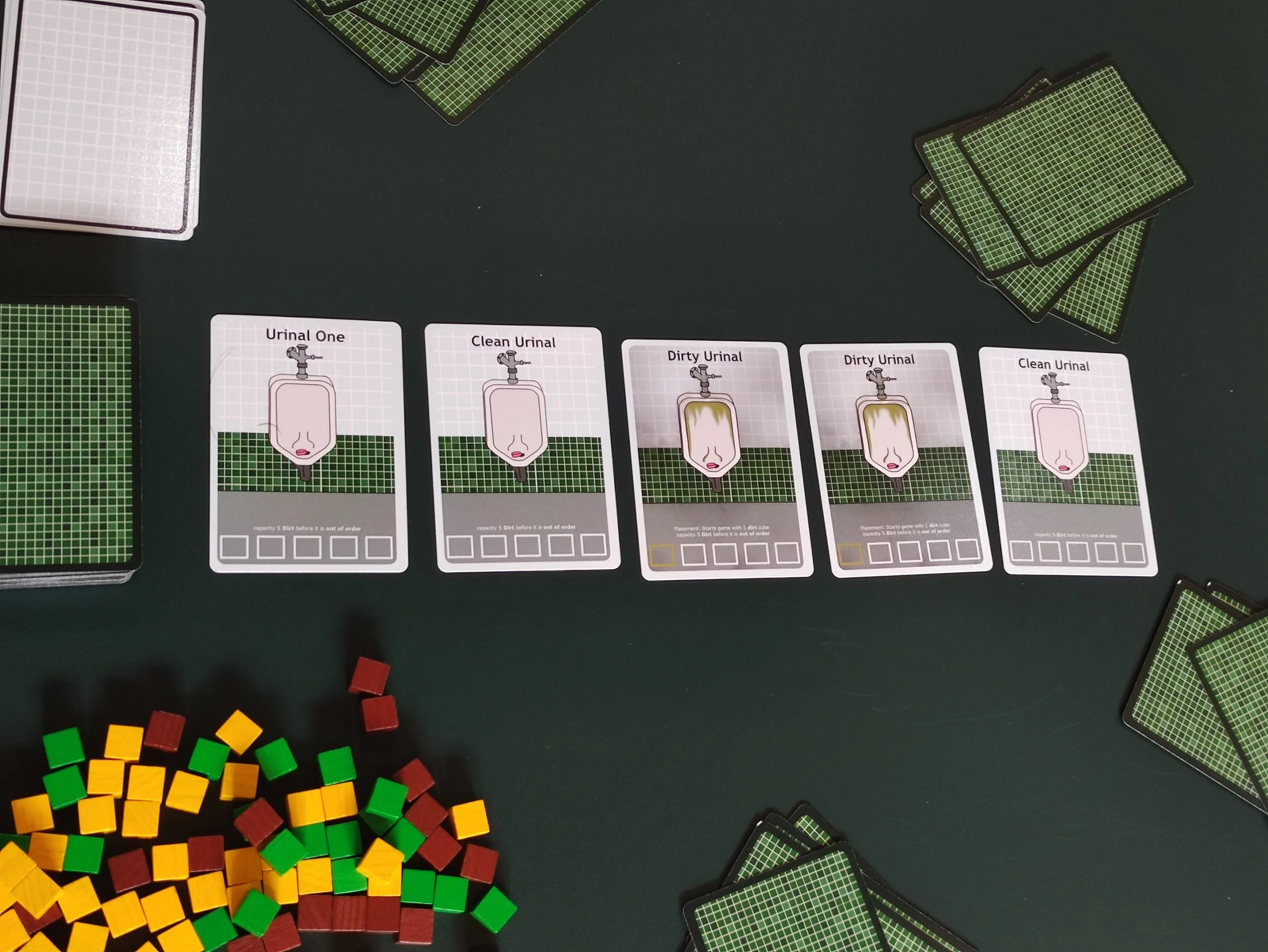A fast paced strategic card game, based on the experiences everyone has had entering a public restroom!